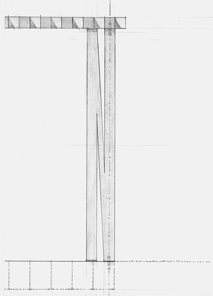 Der Pavillon folgt einer klaren geometrischen Struktur: Decke, Bodenplatte und vier vertikale Stützen. Doch in den Details offenbart sich eine vielschichtige Botschaft: Die vier Träger sind keine gewöhnlichen Säulen – sie formen die Buchstaben E, D, E, N. Nur aus einem bestimmten Blickwinkel lassen sich die Lettern als Wort erkennen. Aus anderen Perspektiven erscheinen sie als abstrakte, beinahe biomorphe Formen, die sich harmonisch zwischen die Baumstämme einfügen.