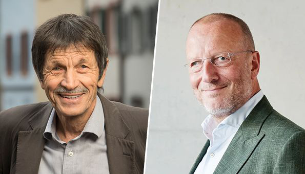 Soziologe Ueli Mäder führt die Gespräche und Peter Schmid begleitet musikalisch.